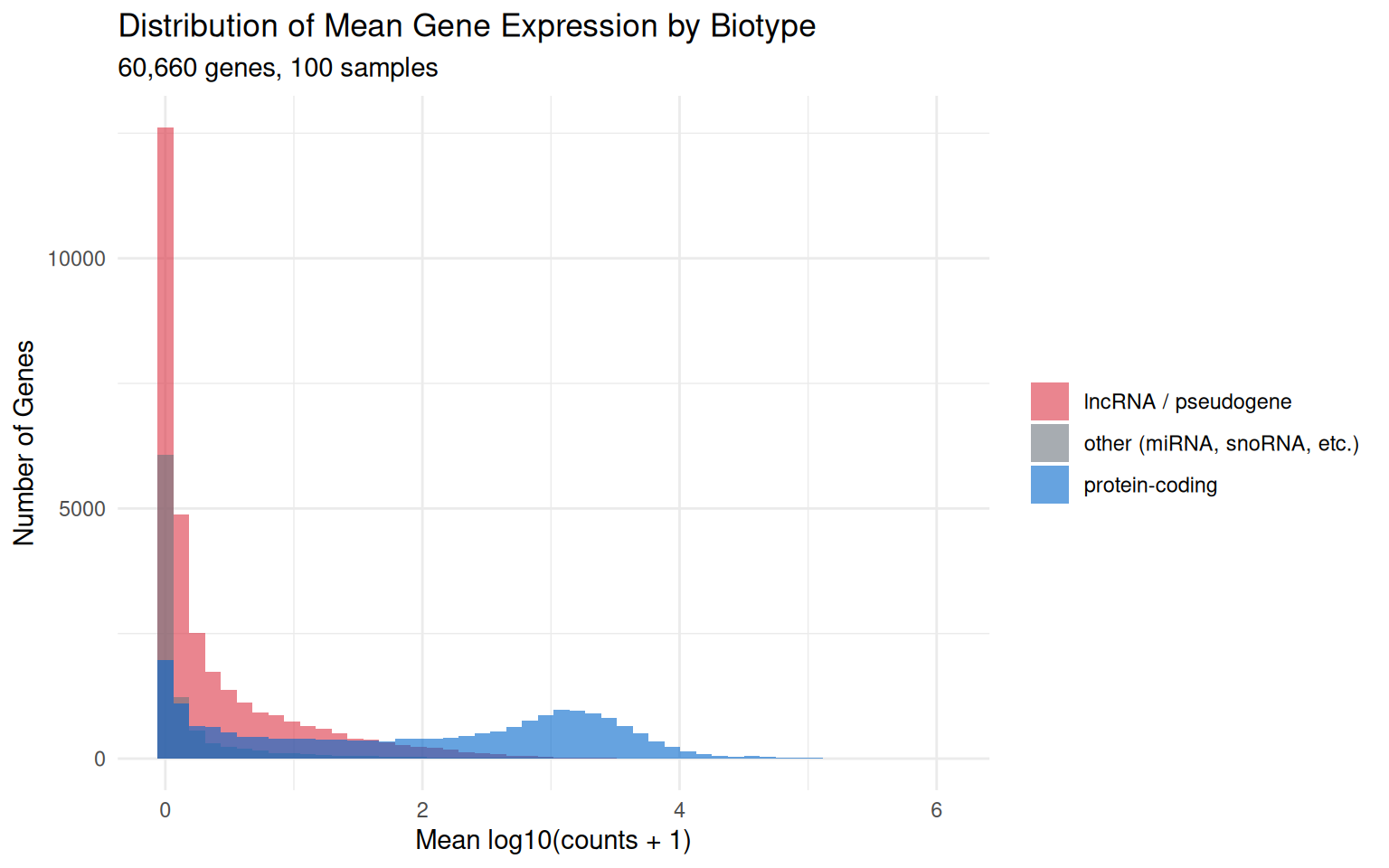 - Total counts: 6,045,546,169 (sum of all read counts across all genes and samples)