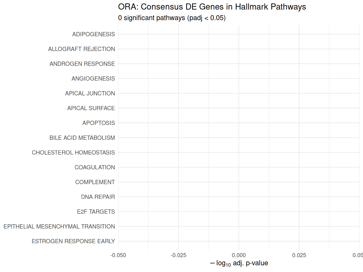 - Consensus genes (significant in all three) used for pathway analysis