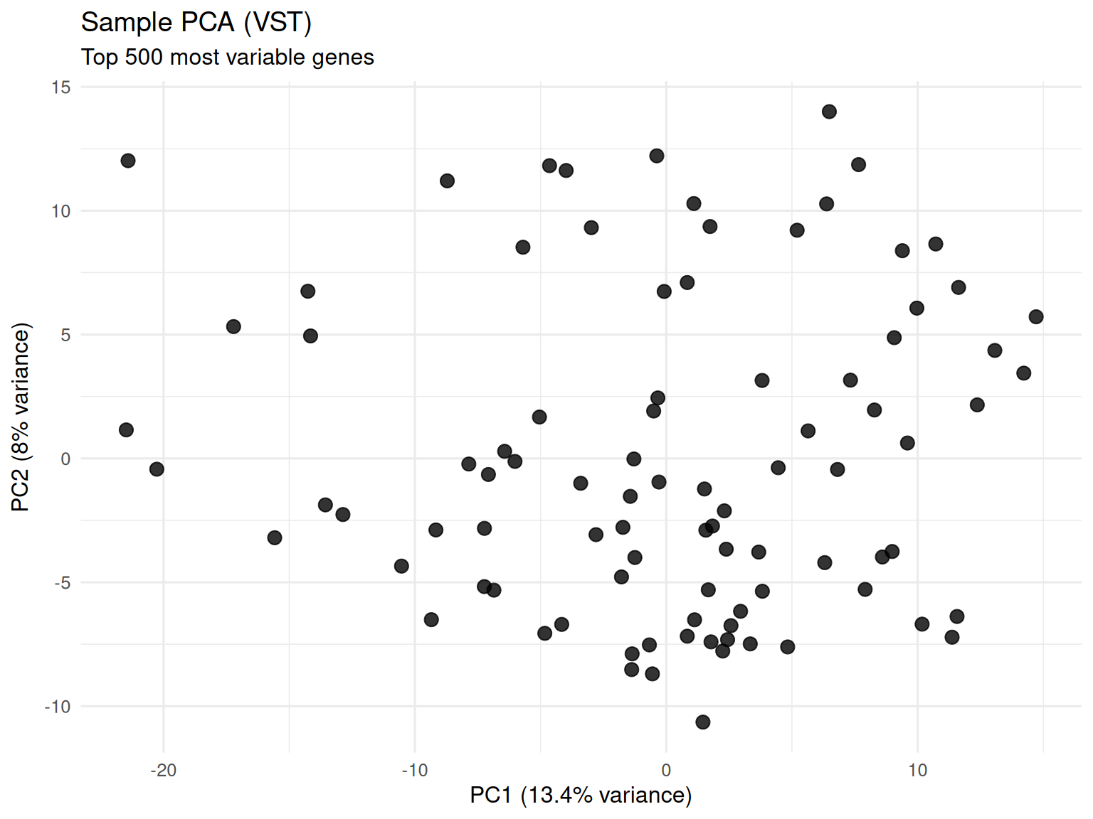 - Computed from top 500 most variable genes after VST