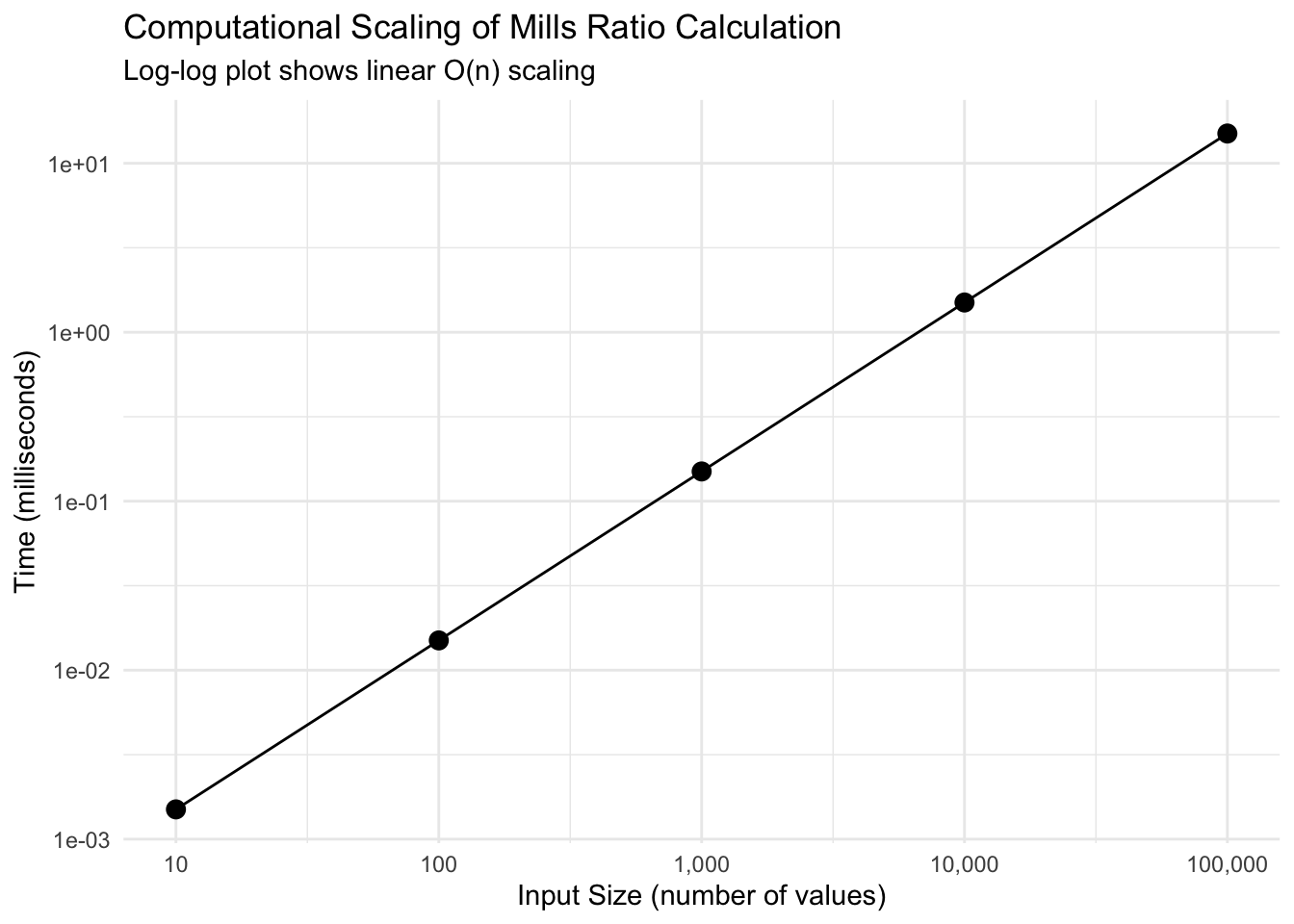 This article benchmarks the millsratio package functions for: - Computational speed - Numerical accuracy - Memory efficiency - Comparison with alternative implementations