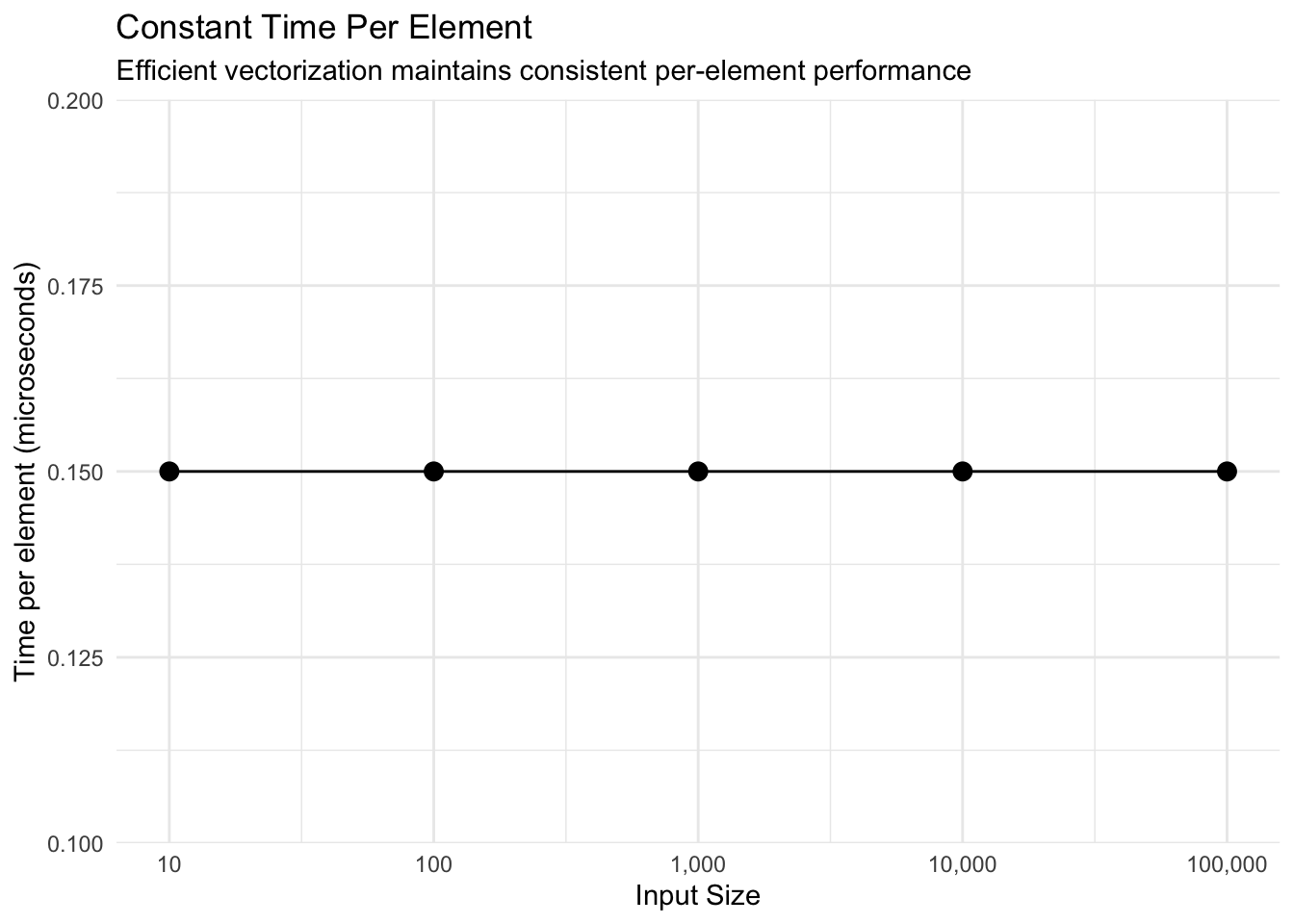 subtitle = "Efficient vectorization maintains consistent per-element performance",
